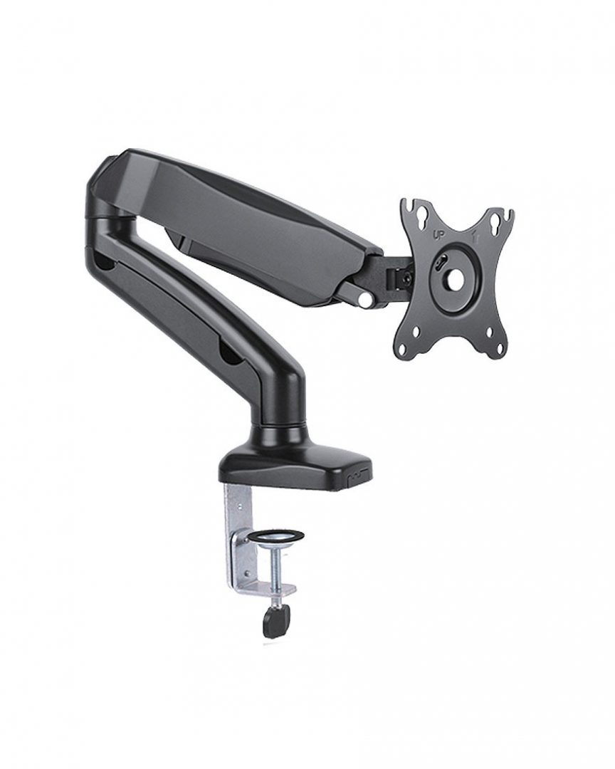 Soporte ideal para mejorar la postura de trabajo y despejar el escritorio, apto para monitores de 13” a 32”, tiene altura regulable para elevar el monitor, inclinación y giro. Apto para colocar el monitor de manera vertical y horizontal, fácil de instalar, con organizador de cables para mantenerlos ocultos y ordenados. Soporte de acero que proporciona solidez y durabilidad.